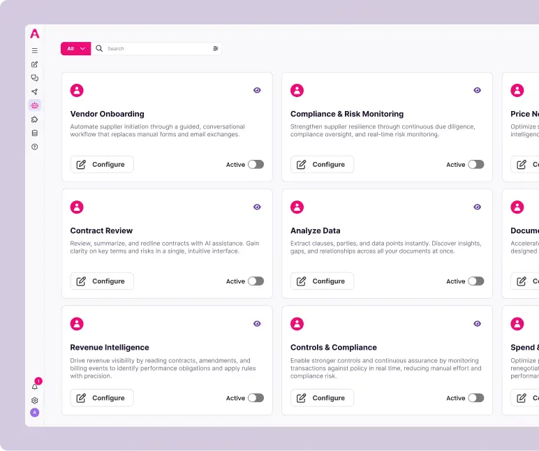 Leah’s Agentic AI runs your business processes and workflows, so your people can work smarter across contracts, procurement, legal, and finance.